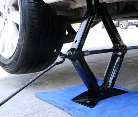 在工作時,只要輕輕的轉動它的黑色搖桿,千斤頂兩邊的支架就會慢慢收攏,使千斤頂的頂蓋在支架的支撐下升到指定的高度,整個操作過程比較緩慢,而且還需要時刻注意搖桿,防止它從手中滑脫,而且頂升后要及時更換輪胎維修汽車,防止過于單薄的它滑到。