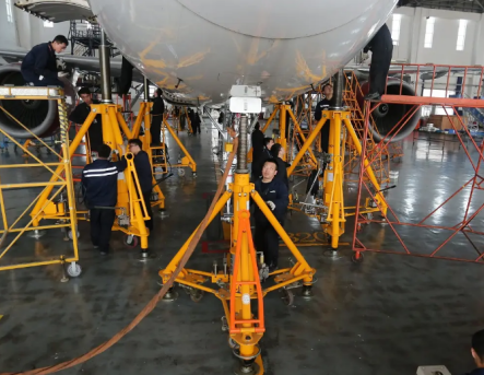 千斤頂平時頂汽車比較多,不過在飛機檢修時用到的千斤頂就不再是我們平時常見的小個子,而是變成了細長型的千斤頂。在它的協助下,飛機維護成本也將大幅降低,檢修人員能重新布設管線、恢復電氣系統,然后完成噴漆、試飛、交付等工作,最終一架原本可以容納170余人的客機,將變身為載重量達24噸的貨機。