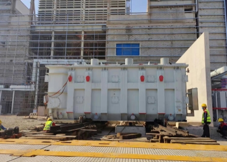 閔行發電廠燃氣-蒸汽聯合循環發電機組示范工程H級燃機主變壓器就位工作由上海電建承建,承建單位經過施工,于5月22日成功完成主變壓器順利就位工作。