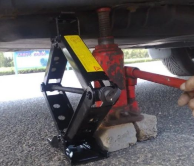 車主在換備胎前不妨將備胎放在車底,萬一車子掉下來還能有個備胎墊著,在搖動車載千斤頂的手柄時也不能用力過猛,或者是用力過輕,沒有信心的情況下可以先拿重物多練習(xí)幾遍。