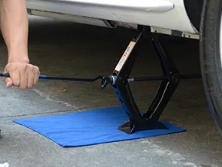 其次,在有坡度的地面上,千斤頂升高后與車身的相對位置可能會有角度的變化,在角度較大的斜坡上這個角度變化會更大,容易滑脫或者損壞,如果故障地點恰好在斜坡上,建議用磚頭或木頭之類的工具卡住車輪避免它們滑動。