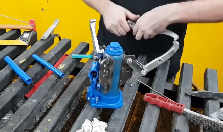 如果仔細觀察的話,我們會發現,其實液壓拉馬和液壓千斤頂的結構是非常相似的,并且都是依靠向前頂的力來完成各自不同的工作內容,只不過液壓拉馬利用的是液壓千斤頂的反作用力,基于這點,有國外牛人突發奇想,在液壓千斤頂的機身上焊接了三條鉤爪,使用鉤爪勾住需要拆卸的頑固部件,然后通過按壓千斤頂的手柄來完成拆卸。