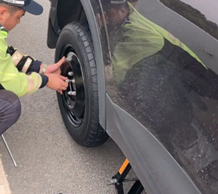 人民群眾生命財產安全,交警用一言一行踐行“我為群眾辦實事”的準則,車輛出現故障刻不容緩,機械千斤頂用自己的千鈞之力頂升起車輛,協助交警、車主更換輪胎,解決了車主的燃眉之急。