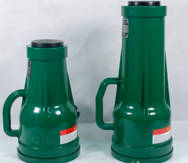 上圖圖片中的千斤頂是兩臺50噸規格的螺旋千斤頂,都能頂升起50噸以下重量的重物,但是我們卻發現它們的身高和胖瘦程度有所差別,原來千斤頂也有高型和矮型的區別。