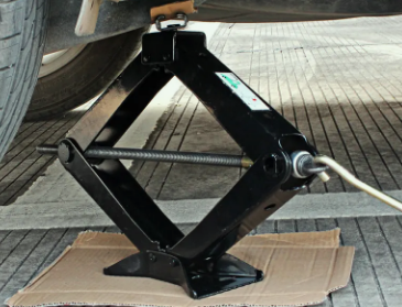 在重物的重壓下,我們依然可以轉動剪式千斤頂手柄讓齒輪轉動,繼續(xù)升高重物,但是卻不能讓千斤頂長時間處于靜態(tài)支撐重物的狀態(tài),畢竟這種千斤頂構件的機械強度比較小。